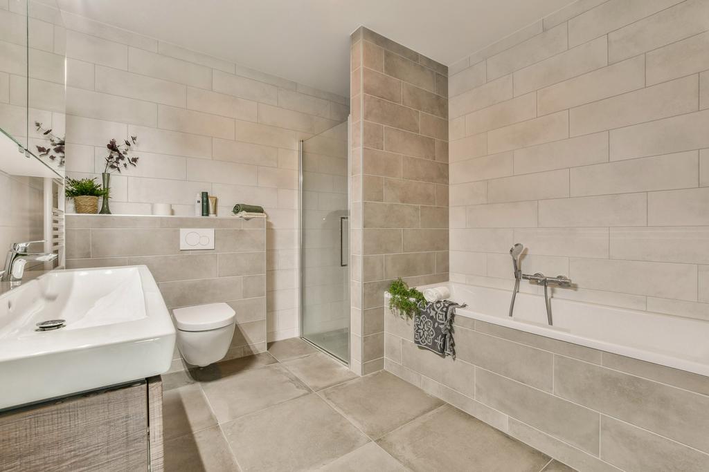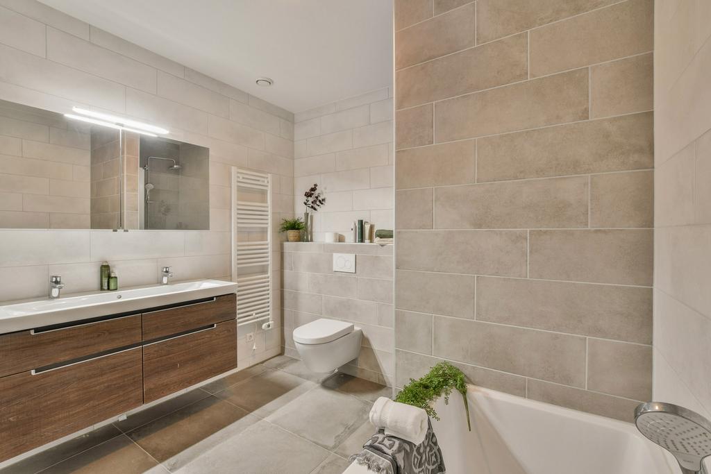 -Complete badkamer met ligbad, inloopdouche, dubbele wastafel en tweede toilet
