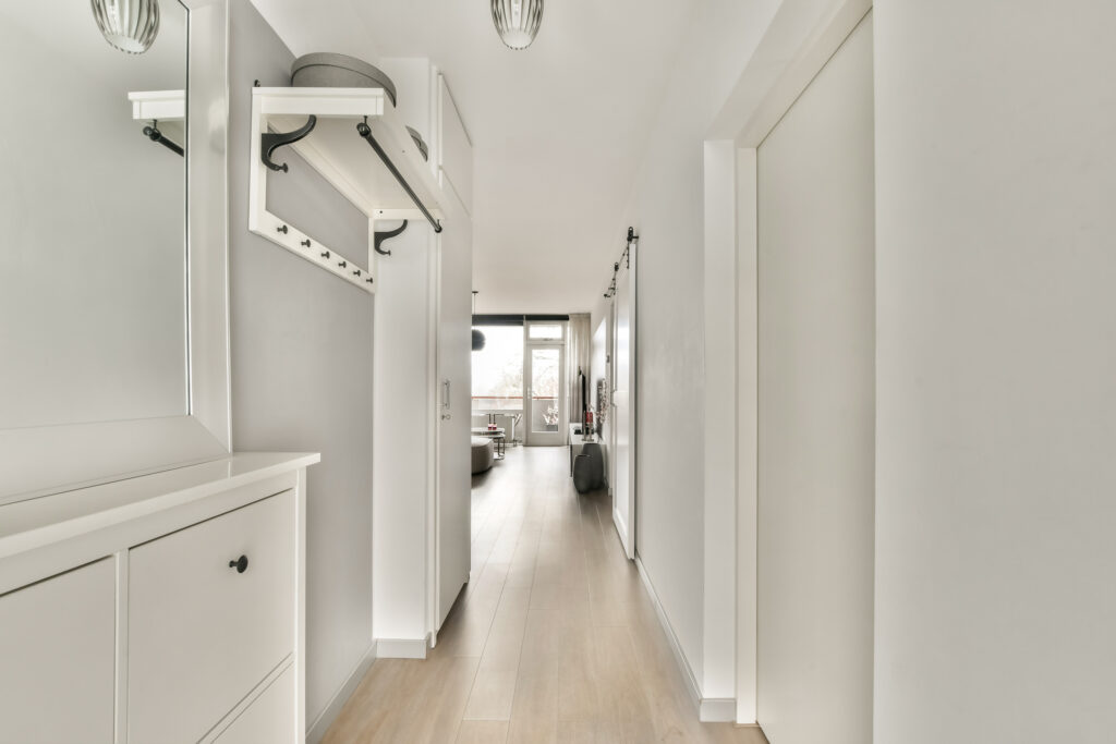 At the end of the gallery, there is a practical storage unit, ideal for additional storage.