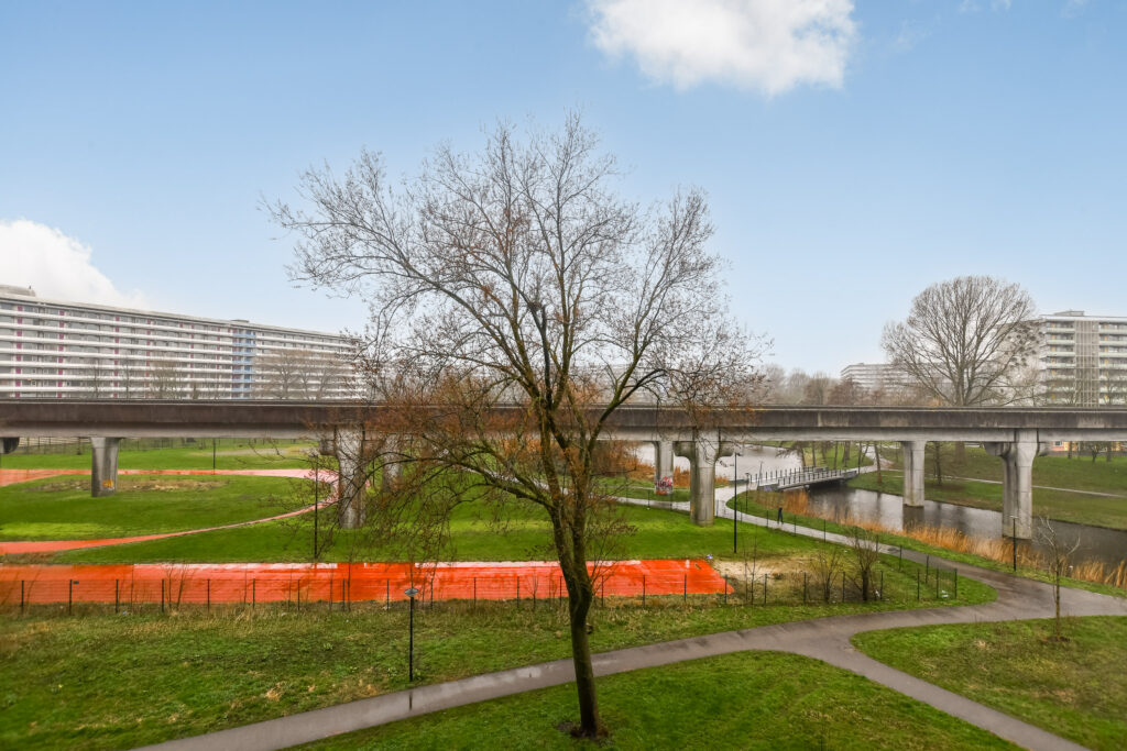 This complex, renovated in 2014, is located in a green and spacious residential area with all amenities within easy reach. The residents are helpful and involved. Nearby you will find the shopping centers De Kameleon and Amsterdamse Poort, offering a wide range of shops, supermarkets, restaurants, and daily conveniences. For relaxation and nature, this location is also ideal. The Diemerbos, Nelson Mandelapark, and the recreational area around Gaasperplas are all close by and perfect for walks, sports activities, or a relaxing day by the water. In addition, various sports facilities are located directly in front of the building, such as an athletics track, tennis court, basketball court, and football field.