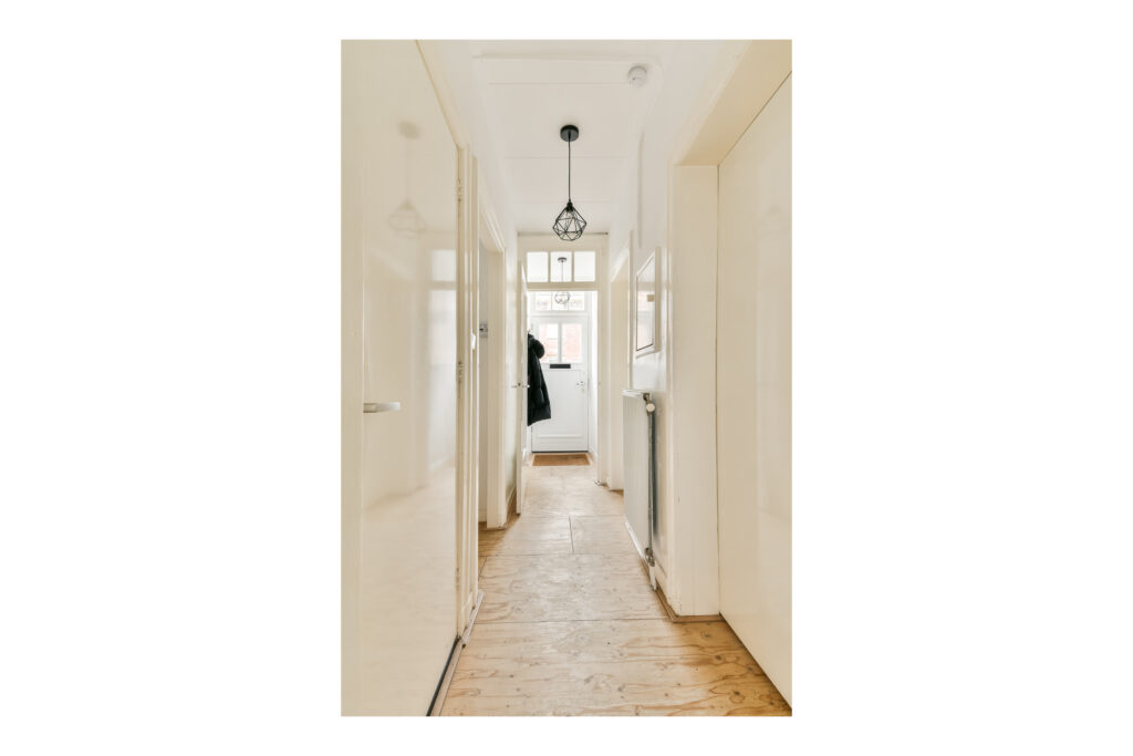 Through the front door, you enter the hallway, which provides access to all rooms.