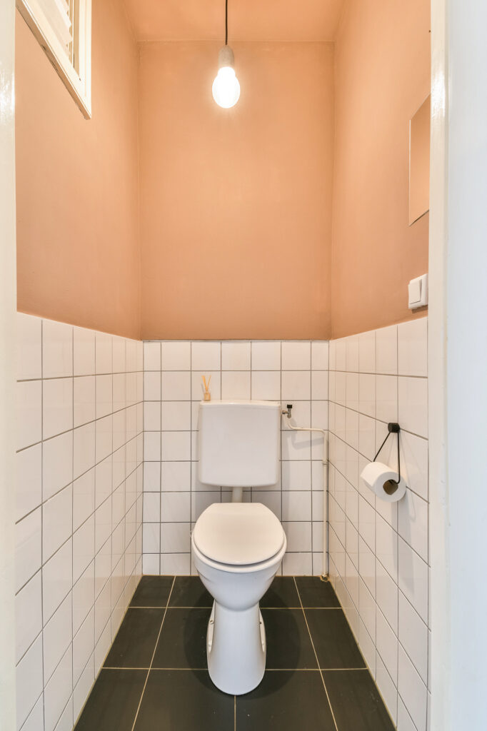 Aan de rechtervoorzijde van de woning bevindt zich de slaapkamer met ruimte voor een tweepersoonsbed. Aangrenzend vind je de badkamer met inloopdouche en wastafel. In het midden van de hal bevindt zich het separate toilet.