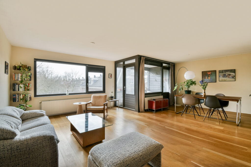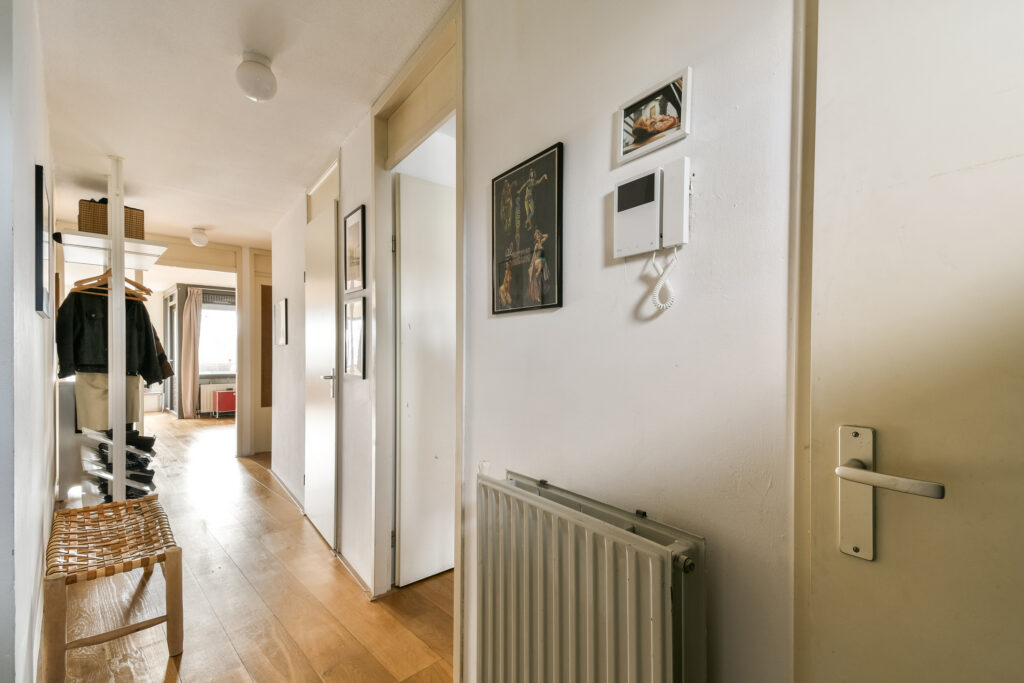 Entree van de woning, hal met toegang tot alle vertrekken. Ruime en lichte woonkamer met toegang tot het balkon is gunstig gelegen op het zuidwesten, waardoor je volop kunt genieten van de middag- en avondzon. Dit maakt het de perfecte plek om na een lange dag te ontspannen en optimaal te genieten van lange, sfeervolle zomerse avonden.